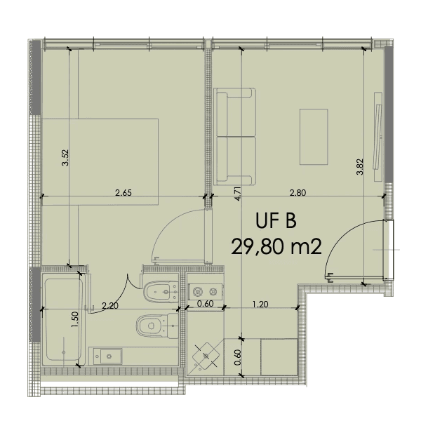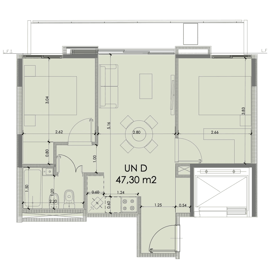 En el edificio se encuentran opciones de dos y tres ambientes. Todos los departamentos cuentan con dormitorios en suite y espacio para vestidor.
